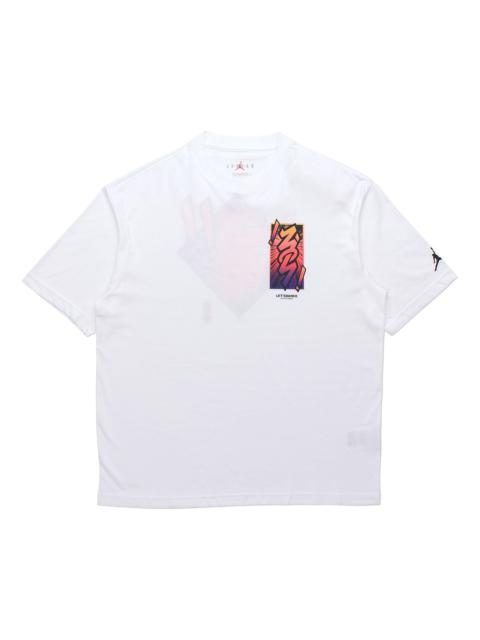 Men's Jordan Dri-FIT Zion Basketball Sports Printing Knit Round Neck Short Sleeve Creamy White T-Shi