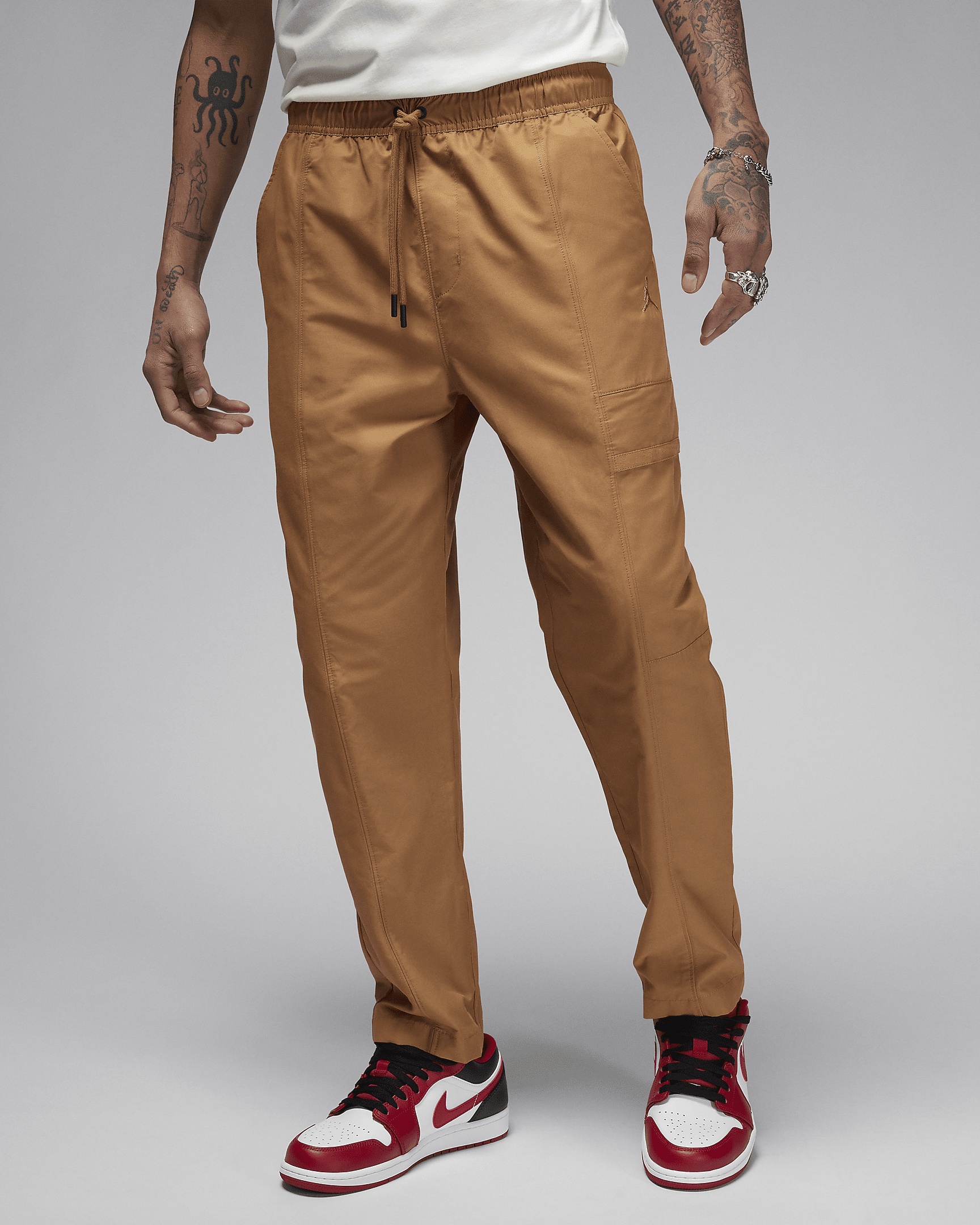 School, work, whatever—these are pants for everywhere you go. Center seams and an extra cargo pocket give you a look with just enough distinction. And the woven material is lightweight and airy so you can wear 'em all day, no problem. Benefits - Woven fabric feels lightweight, durable, and flexes for ease of movement. - Elastic waistband with drawcord gets you the perfect fit. - Back, side and cargo pockets let you easily carry your belongings. Product Details - 62% cotton/38% nylon - Machine wash - Imported - Shown: Legend Dark Brown - Style: FN4539-231 SIZE & FIT Model is wearing size M and is 6′1″185cm Standard fit: easy and traditional