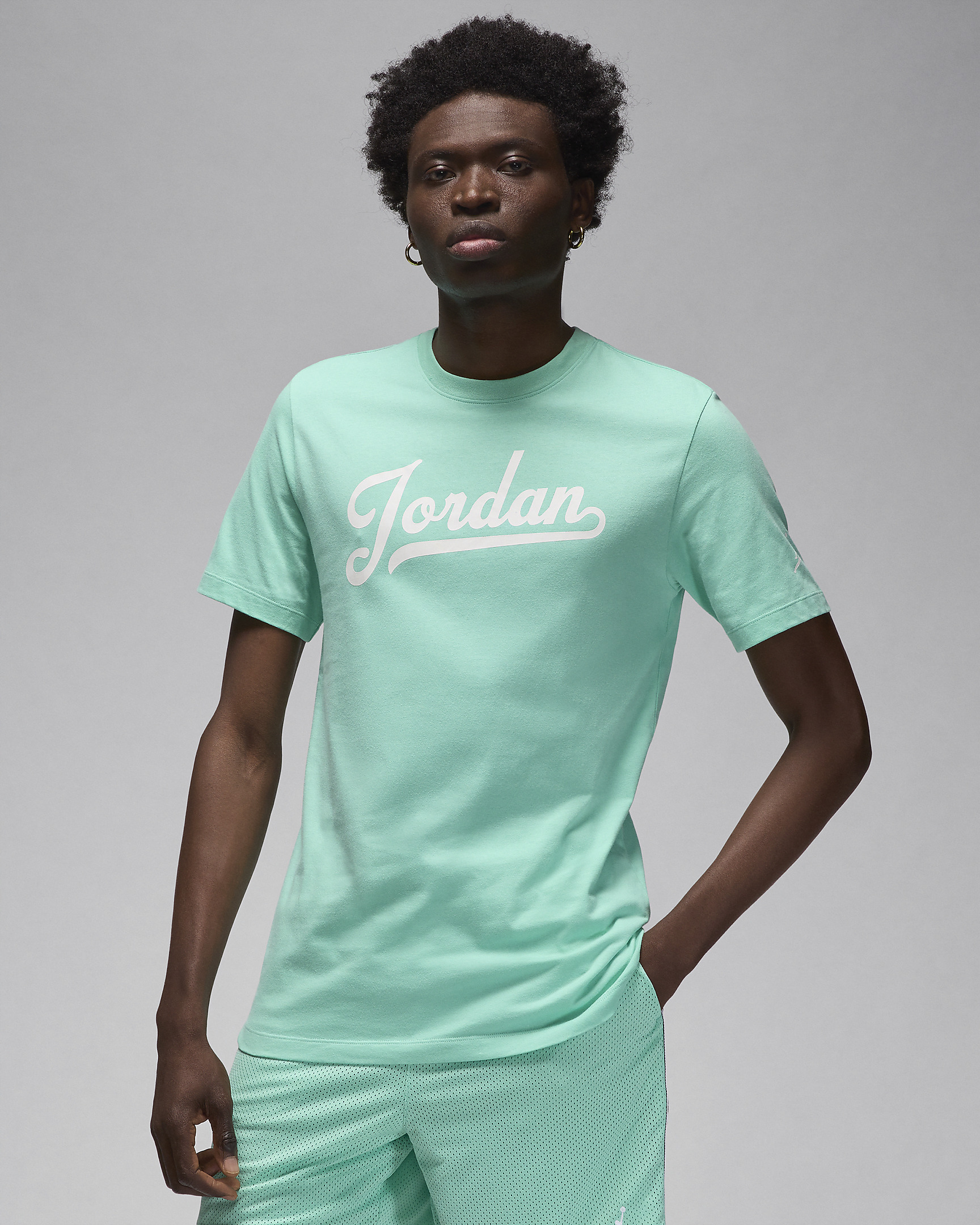 That's a clean lookin' tee! And it's made of 100% soft cotton for a classic feel. Nice. Product Details - 100% cotton - Machine wash - Imported - Shown: Emerald Rise/White/White - Style: FN5958-349 SIZE & FIT Standard fit: easy and traditional