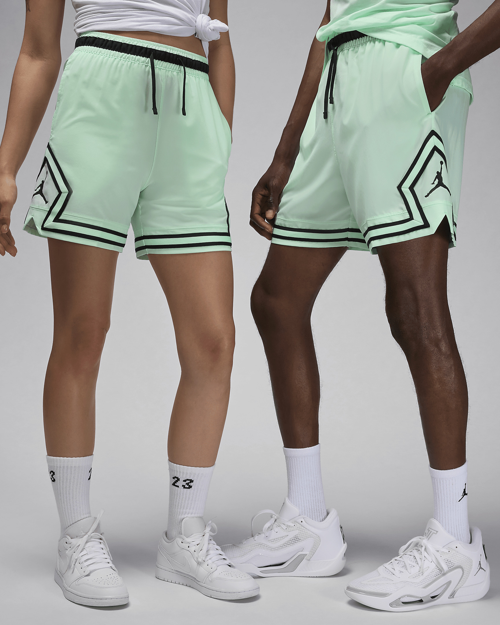 Defense, offense or rest days, our Diamond shorts can handle it all. With a hem that hits at the mid-thigh, they allow you to move freely on the court, in the gym or when kicking it with friends. Lightweight stretch-woven fabric uses our sweat-wicking technology to help you stay cool, comfortable and focused on your next move. Benefits - Nike Dri-FIT technology moves sweat away from your skin for quicker evaporation, helping you stay dry and comfortable. - Stretch-woven fabric is lightweight and flexes for ease of movement. Product Details - Body: 88% polyester/12% spandex. Pocket bags: 100% polyester. - Side pockets - Machine wash - Imported - Shown: Mint Foam/Black/Black - Style: FQ2989-353 SIZE & FIT Female model is wearing size XS and is 5'8"173cm Male model is wearing size M and is 6'2"188cm Standard fit: easy and traditional