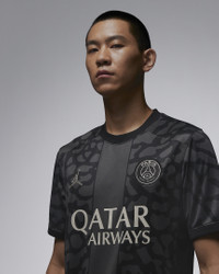 Icons collide with the 2023/24 PSG Third jersey. One of the most iconic clubs in the world meets one of the most recognizable patterns in streetwear—Jordan elephant print—to create a jersey that transcends the game. On the inside you'll find a hidden Paris logo with the Jumpman design included in the middle. Our Stadium collection pairs replica design details with sweat-wicking technology to give you a game-ready look inspired by Les Parisiens. Benefits - Nike Dri-FIT technology moves sweat away from your skin for quicker evaporation, helping you stay dry and comfortable. - Replica design gives you details modeled after what the pros wear. Product Details - 100% polyester - Machine wash - Imported - Shown: Anthracite/Black/Stone - Style: DX9823-069 SIZE & FIT Standard fit: easy and traditional