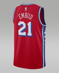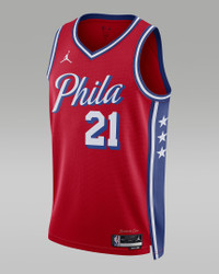 Emulate your favorite player in this Philadelphia 76ers jersey, a fan-ready favorite with logo and design details that match what the pros wear on the court. Plus, it infuses breathable mesh with sweat-wicking technology to help keep you cool and dry whether you’re burning up the court or just keeping it casual around town. Benefits - Dri-FIT technology moves sweat away from your skin for quicker evaporation, helping you stay dry and comfortable. - Breathable mesh helps keep you feeling cool on or off the court. Product Details - Woven jock tag at hem - Standard fit for a relaxed, easy feel - 100% polyester - Machine wash - Imported - Shown: University Red - Style: DO9539-658 SIZE & FIT Standard fit: easy and traditional If you typically wear men's styles, please select your usual size. If you typically wear women's styles, please size down.