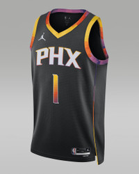 Emulate your favorite player in this Phoenix Suns jersey, a fan-ready favorite with logo and design details that match what the pros wear on the court. Plus, it infuses breathable mesh with sweat-wicking technology to help keep you cool and dry whether you’re burning up the court or just keeping it casual around town. Benefits - Dri-FIT technology moves sweat away from your skin for quicker evaporation, helping you stay dry and comfortable. - Breathable mesh helps keep you feeling cool on or off the court. Product Details - Woven jock tag at hem - Standard fit for a relaxed, easy feel - 100% polyester - Machine wash - Imported - Shown: Black - Style: DO9540-012 SIZE & FIT Standard fit: easy and traditional If you typically wear men's styles, please select your usual size. If you typically wear women's styles, please size down.