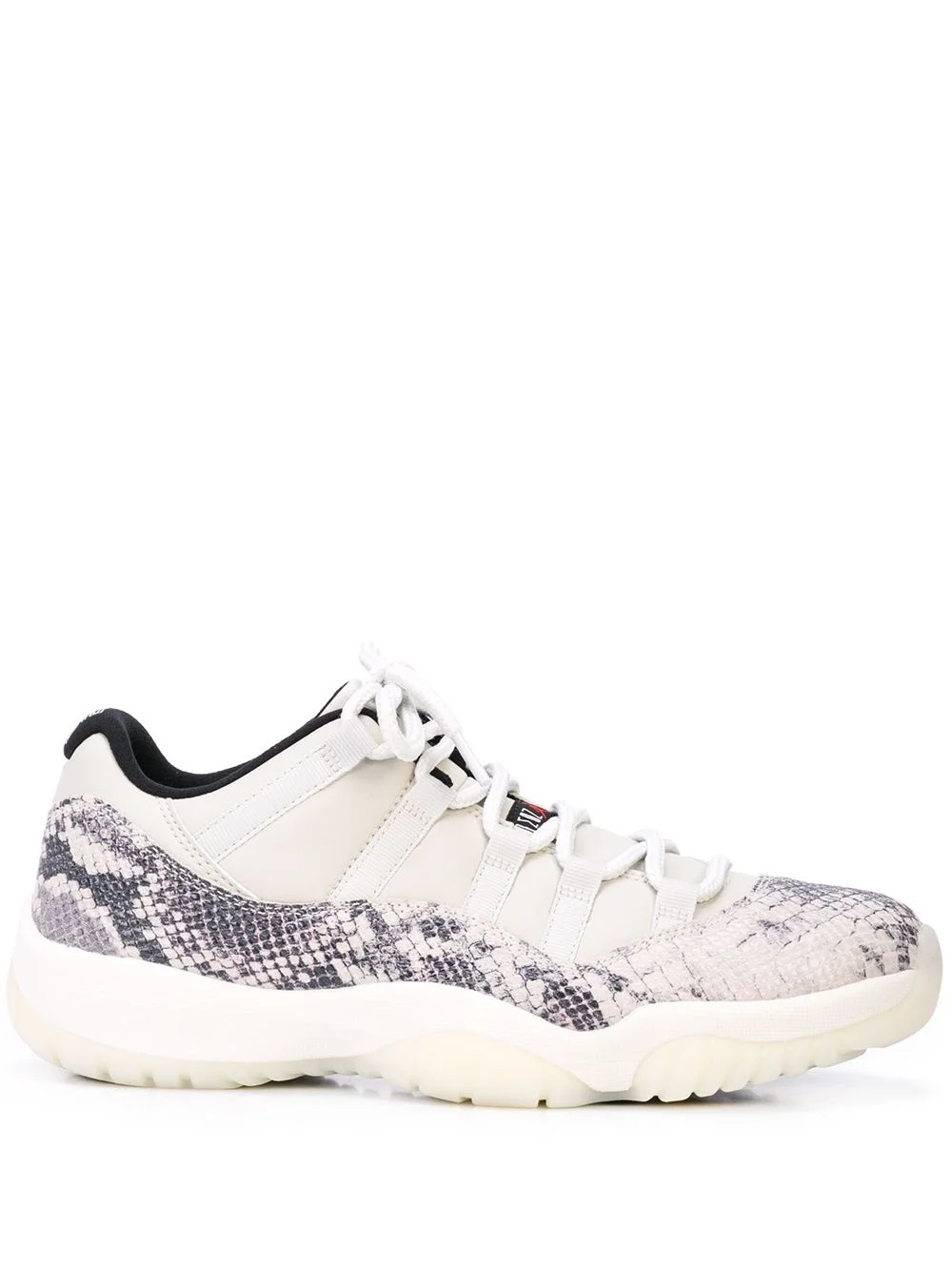 Air Jordan 11 Retro Low "Snakeskin Light Bone" sneakers A new remake of a beloved classic. These Air Jordan 11 Retro Low "Light Bone" sneakers from Jordan are finished with a textured snakeskin panel along the lower rubber sole. Perfect for everyday wear, the timeless silhouette is one of Michael Jordan's classics with a twist. Highlights - Light bone/university red - Recycled rubber - Round toe - Flat rubber sole - Front lace-up fastening - Branded insole - These styles are supplied by a premium sneaker marketplace. stocking only the most sought-after footwear, they source and curate some of the most hard to find sneakers from around the world. Imported Composition Outer: Recycled Rubber 100%