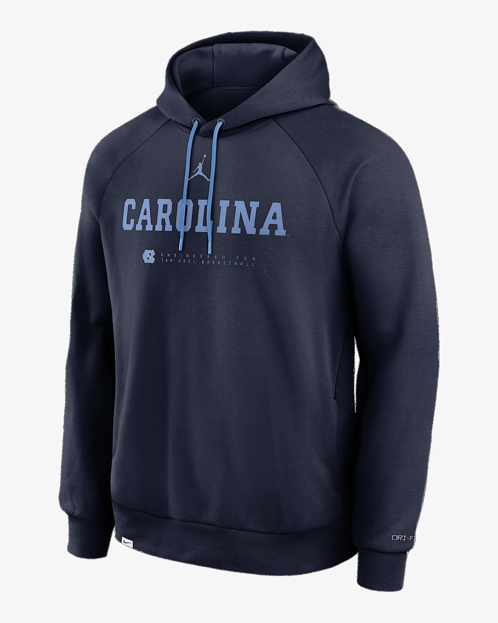 Crafted for performance and comfort, the North Carolina Courtside Basketball Practice Hoodie is made from breathable double pique fabric with sweat-wicking technology and UV protection. Its raglan sleeves help comfortably increase your range of motion as you support your favorite team. Benefits - Nike Dri-FIT technology moves sweat away from your skin for quicker evaporation, helping you stay dry and comfortable. - This product provides UVA and UVB protection from the sun only in the areas covered by the garment. To protect exposed areas, the use of good quality sunscreen is recommended. Product Details - 78% recycled polyester/12% cotton/10% organic cotton - Machine wash - Imported - Shown: College Navy - Style: 0JEJ99MKNCN-REJ