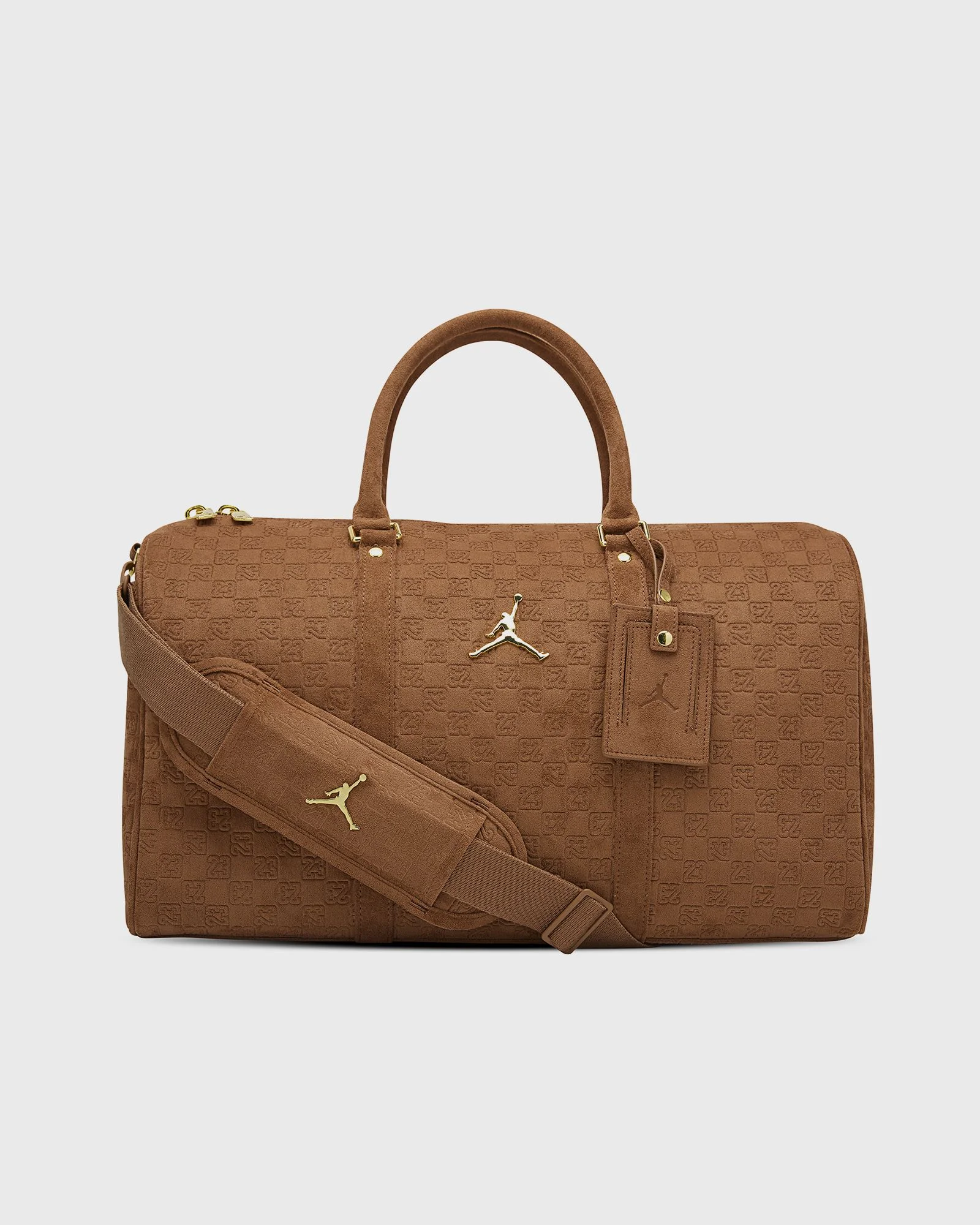 Crafted from soft, durable faux suede with an all-over monogram, the Jordan Jam Suede Monogram Duffle Bag features a spacious main compartment and an interior zippered pocket, offering plenty of room for all your essentials. The double top handles and adjustable, detachable shoulder strap allow for flexible carrying, while details like logo hardware and a detachable luggage tag add the ultimate premium touch. - All-over monogram pattern - Dimensions: 32 x 47 x 17 cm - Spacious main compartment - Interior zippered pocket - Adjustable, removable strap Article number: MM9205-X6X Gender: men Color: COGNAC Material: 100% Polyurethane