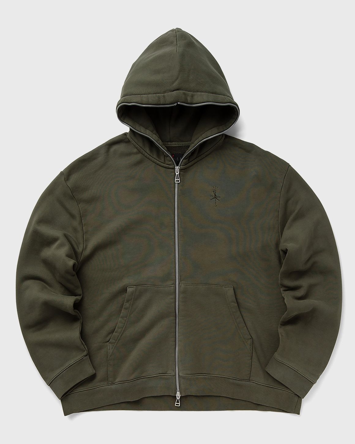 Travis Scott and Jordan Brand have teamed up once again to create a collection of casual essentials in heavy fabrics with washes and co-branding. The heavy fleece makes this hoodie ideal for layering looks. A full-length wash and color-coordinated embroidery complete the design. - Jordan x Travis Scott Full-Zip Hoodie - Full-length zip - Kangaroo pocket - Ribbed cuffs and hem - Tonal embroidery Article Number: DZ5500-325 Gender: Men, Women Color: CARGO KHAKI Material: 100% Cotton