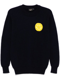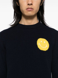 fisherman's smile crew-neck jumper Highlights - Navy blue - Merino wool - Knitted construction - Patterned jacquard - Crew neck - Long sleeves - Ribbed cuffs and hem Made in Italy Composition Merino 100% SIZE & FIT Model measurements Height 6 ft 2 in(1.88 m) Bust/Chest 34.25 in(87 cm) Hips 34.64 in(88 cm) Waist 26.77 in(68 cm) FittingInformation Designed for a regular fit, offering a comfortable loose fit throughout the body The ribbed hem offers a close, comfortable fit Made with a midweight knit, this piece offers some stretch