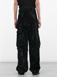 Black Crushed Velvet Cargo Pants