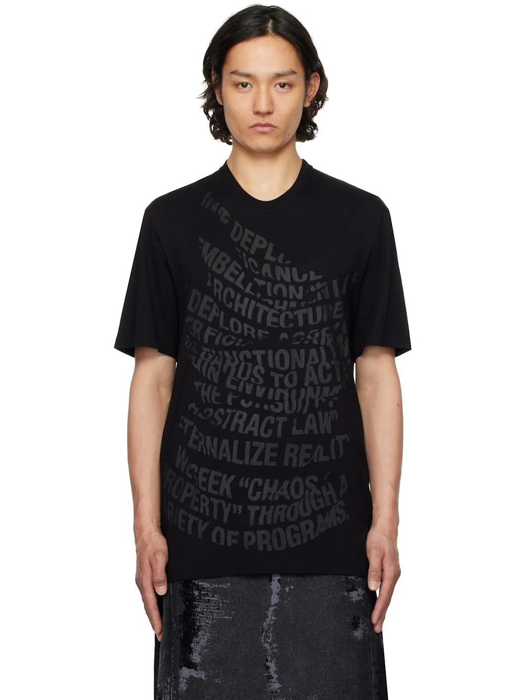 Cotton- and rayon-blend jersey T-shirt. · Rib-knit crewneck · Text printed at front Supplier color: Black 50% cotton, 50% rayon. Made in Japan 251420M213004
