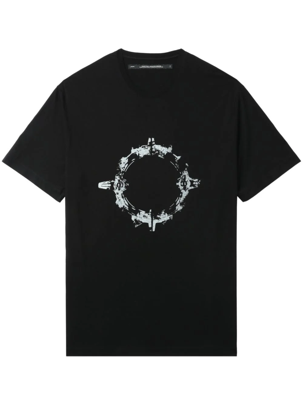 abstract-print crew-neck T-shirt Highlights - Black - Cotton blend - Abstract pattern print - Round neck - Short sleeves - Straight hem Imported Composition Rayon 50%, Cotton 50%