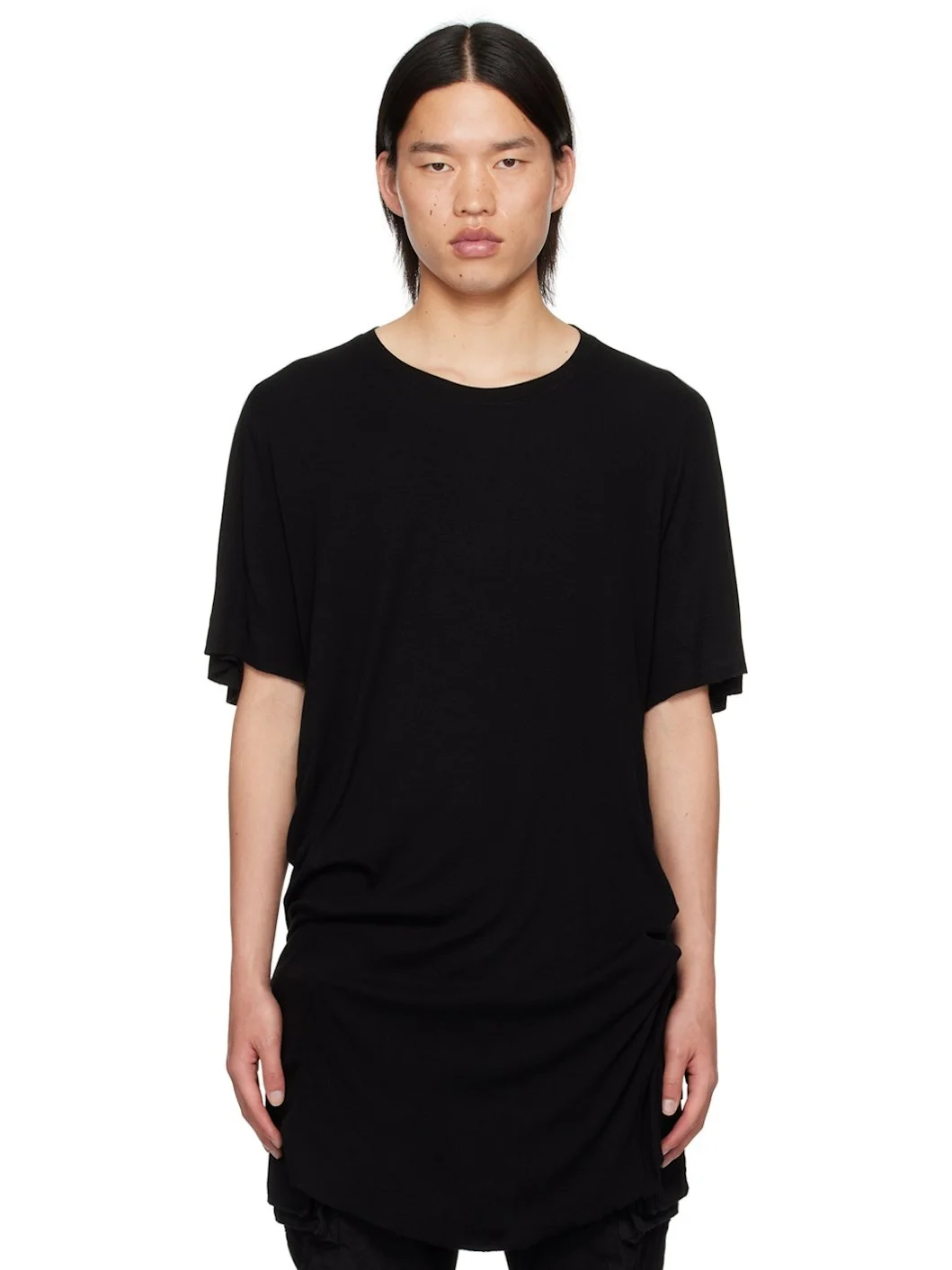Stretch rayon ribbed jersey T-shirt. · Crewneck · Raw edge at hem · Twisted side seams Supplier color: Black 95% rayon, 5% polyurethane. Made in Japan 242420M213004