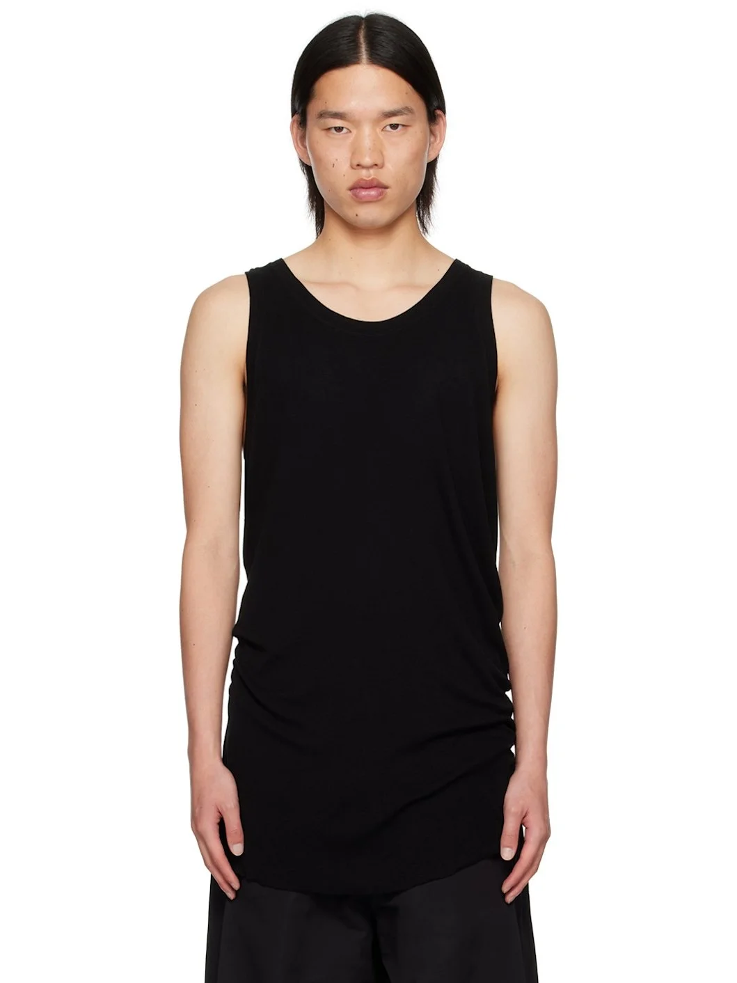 Stretch rayon ribbed jersey tank top. · Scoop neck · Twisted side seams · Racer back Supplier color: Black
