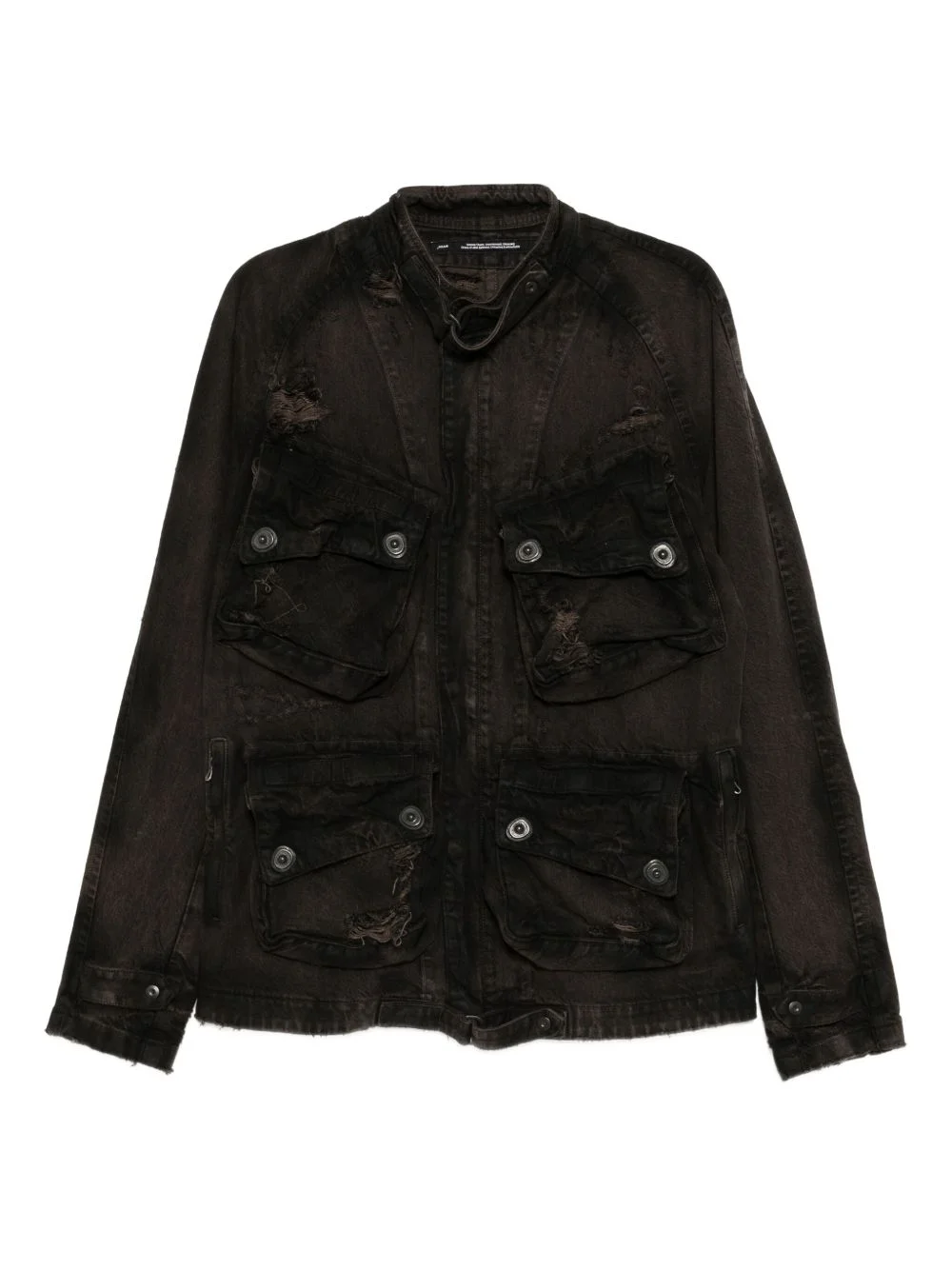 distressed-effect denim jacket Highlights - Brown Imported Composition Cotton 100% SIZE & FIT Model measurements Height 6 ft 1 in(1.85 m) Bust/Chest 40.15 in(102 cm) Hips 37.79 in(96 cm) Waist 29.52 in(75 cm) FittingInformation Designed to be unstructured, offering a loose fit throughout Sturdy and hard-wearing, this denim piece offers no stretch Washing instructions Hand Wash