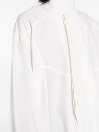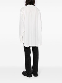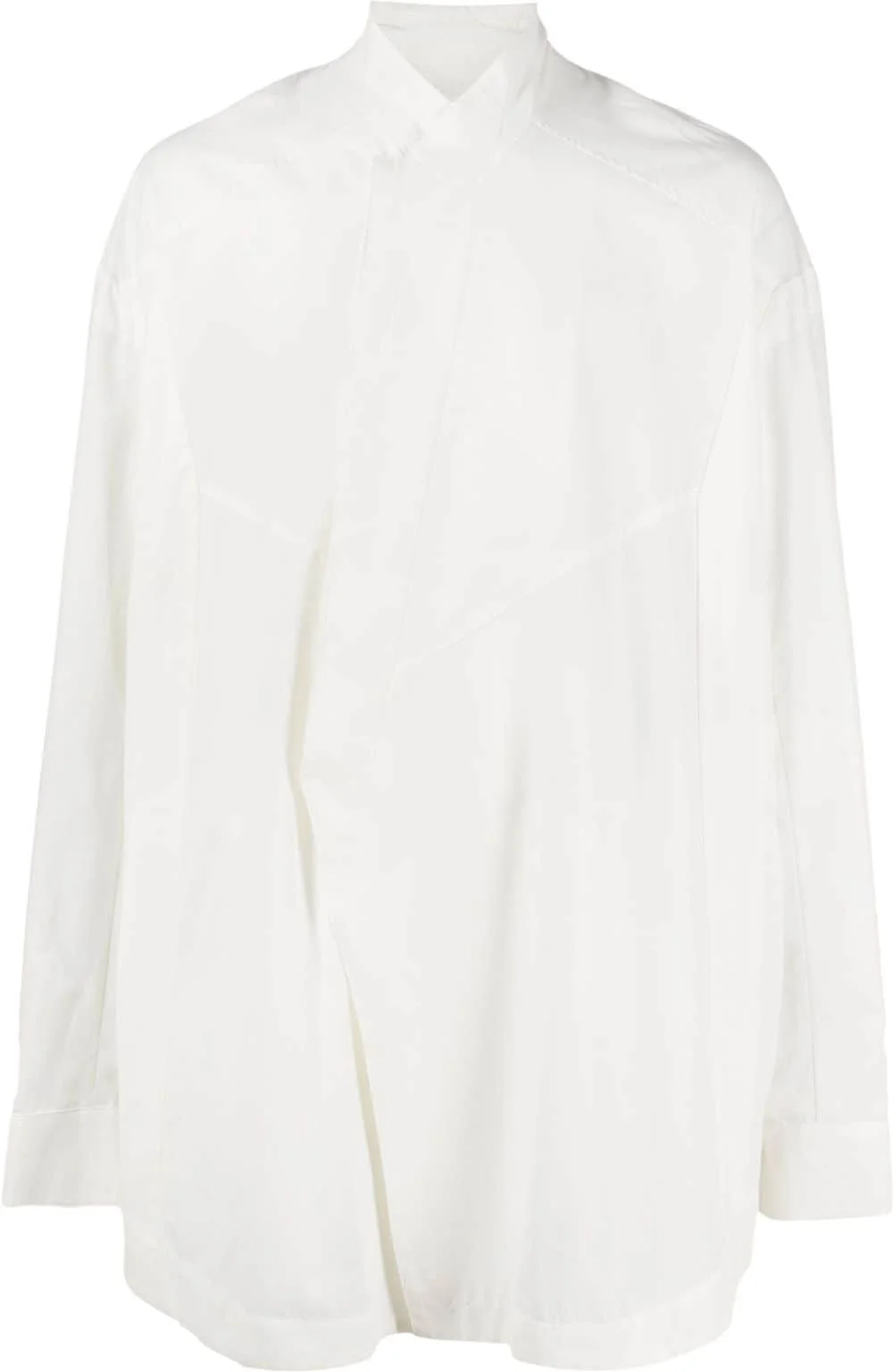 concealed-fastening cotton-blend shirt Highlights - Off-white - Cotton blend - Drop shoulder - Collarless - Concealed front fastening - Long sleeves - Buttoned-cuff sleeves - Curved hem Imported Composition Viscose 50%, Cotton 50% SIZE & FIT Model measurements Height 6 ft 2 in(1.87 m) Bust/Chest 33.07 in(84 cm) Hips 35.43 in(90 cm) Waist 26.77 in(68 cm) FittingInformation Designed for an oversized fit, offering additional room throughout Constructed with additional length on the sleeve Made from a midweight non-stretch fabric This piece fits true to size – if you would prefer a closer fit, take one size down