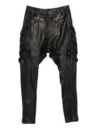 Gas Mask Jodhpurs pants Highlights - Black - Front button and zip fastening - Four front flap pockets - Two side cargo pockets - Two rear flap pockets Imported Composition Lining: Cupro 100% Outer: Calf Leather 100% Washing instructions Do Not Wash/Do Not Dry Clean