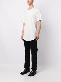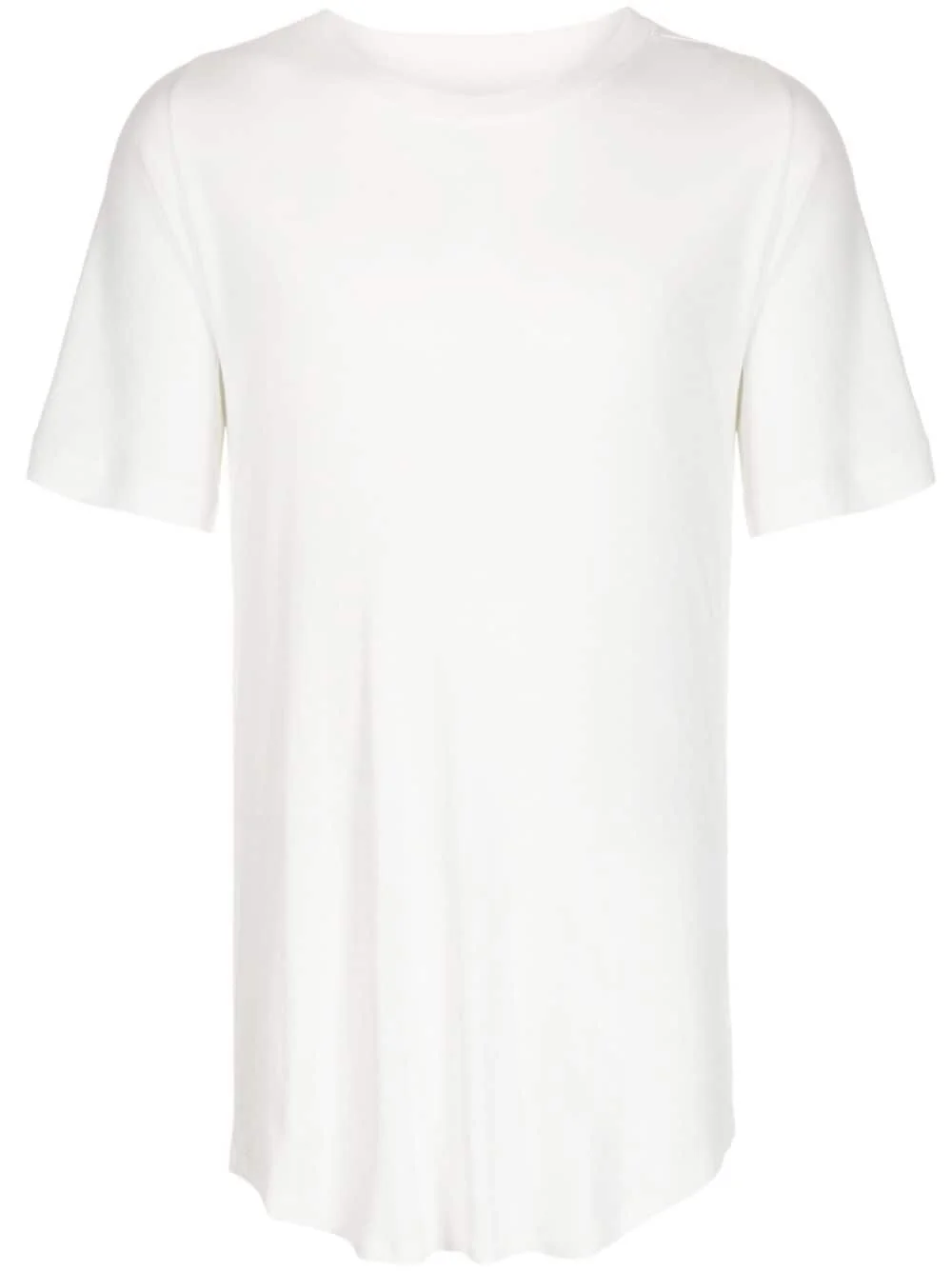 curved-hem cotton T-shirt Highlights - Off-white - Cotton - Round neck - Short sleeves - Curved hem Imported Composition Body: Cotton 100% SIZE & FIT Model measurements Height 6 ft 2 in(1.89 m) Bust/Chest 37.4 in(95 cm) Hips 36.61 in(93 cm) Waist 28.34 in(72 cm) FittingInformation Designed for a slim fit, offering a comfortable fit that sits just away from the body Made from a midweight non-stretch fabric, this piece offers minimal elasticity when worn This piece fits true to size – take your usual size Washing instructions Hand Wash