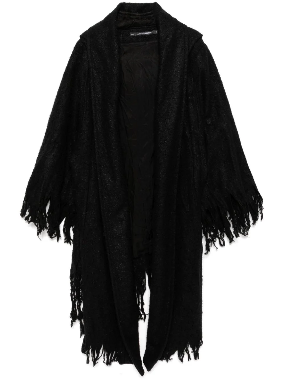 After-Rave robe Highlights - Black - Classic hood - Frayed edge - Detachable adjustable waist strap - Full lining Imported Composition Outer: Wool 55%, Mohair 31%, Nylon 14% Lining: Cupro 100%