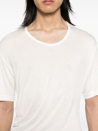 drapped T-shirt Highlights - White - Jersey texture - Draped detailing - Crew neck - Short sleeves - Asymmetric hem Imported Composition Rayon 90%, Silk 10% SIZE & FIT Model measurements Height 6 ft 2 in(1.88 m) Bust/Chest 34.25 in(87 cm) Hips 34.64 in(88 cm) Waist 26.77 in(68 cm) FittingInformation Designed for a slim fit, offering a comfortable fit that sits just away from the body Made from a lightweight non-stretch fabric, this piece offers minimal elasticity when worn