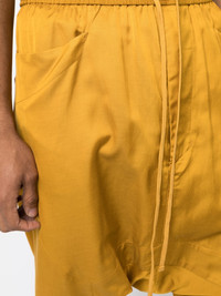 drop-crotch shorts Highlights - Mustard yellow - Cotton blend - Drawstring fastening - Two side pouch pockets - Two rear welt pockets Imported Composition Cupro 50%, Cotton 42%, Linen/Flax 8% SIZE & FIT Model measurements Height 6 ft 3 in(1.9 m) Bust/Chest 35.03 in(89 cm) Hips 36.61 in(93 cm) Waist 29.13 in(74 cm) FittingInformation Designed for a tapered leg, offering a loose unrestricted fit over the leg with a closer fit towards the ankle Adjust this piece’s waistband to your preference using the drawstring Made from a midweight non-stretch fabric This piece fits small – take one size up