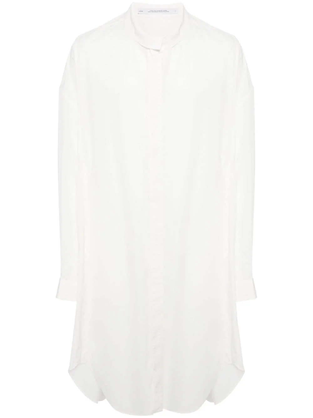 drop-shoulder poplin shirt Highlights - Off-white - Poplin texture - Stand-up collar - Front button fastening - Drop shoulder - Long sleeves - Buttoned cuffs - Extra-long length - Curved hem Imported Composition Nylon 55%, Cotton 32%, Linen/Flax 13% SIZE & FIT Model measurements Height 6 ft 2 in(1.87 m) Bust/Chest 34.25 in(87 cm) Hips 36.22 in(92 cm) Waist 29.52 in(75 cm) FittingInformation Designed for an oversized fit, offering additional room throughout Made from a midweight non-stretch fabric This piece fits true to size – take your usual size