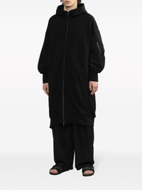 hooded drop-shoulder coat Highlights - Black - Cotton - Slouchy hood - Front zip fastening - Drop shoulder - Long sleeves - Mid-length - Sleeve zip pocket Imported Composition Cotton 100% Washing instructions Read Manufacturer Guidelines
