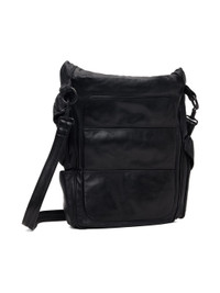 Grained lambskin messenger bag in black. · Adjustable and detachable shoulder strap · Flap pocket at face and sides · Quilted panel at back face · Press-stud flap · Zip pocket at interior · Barathea lining · H15" x W12" x D3" Supplier color: Black