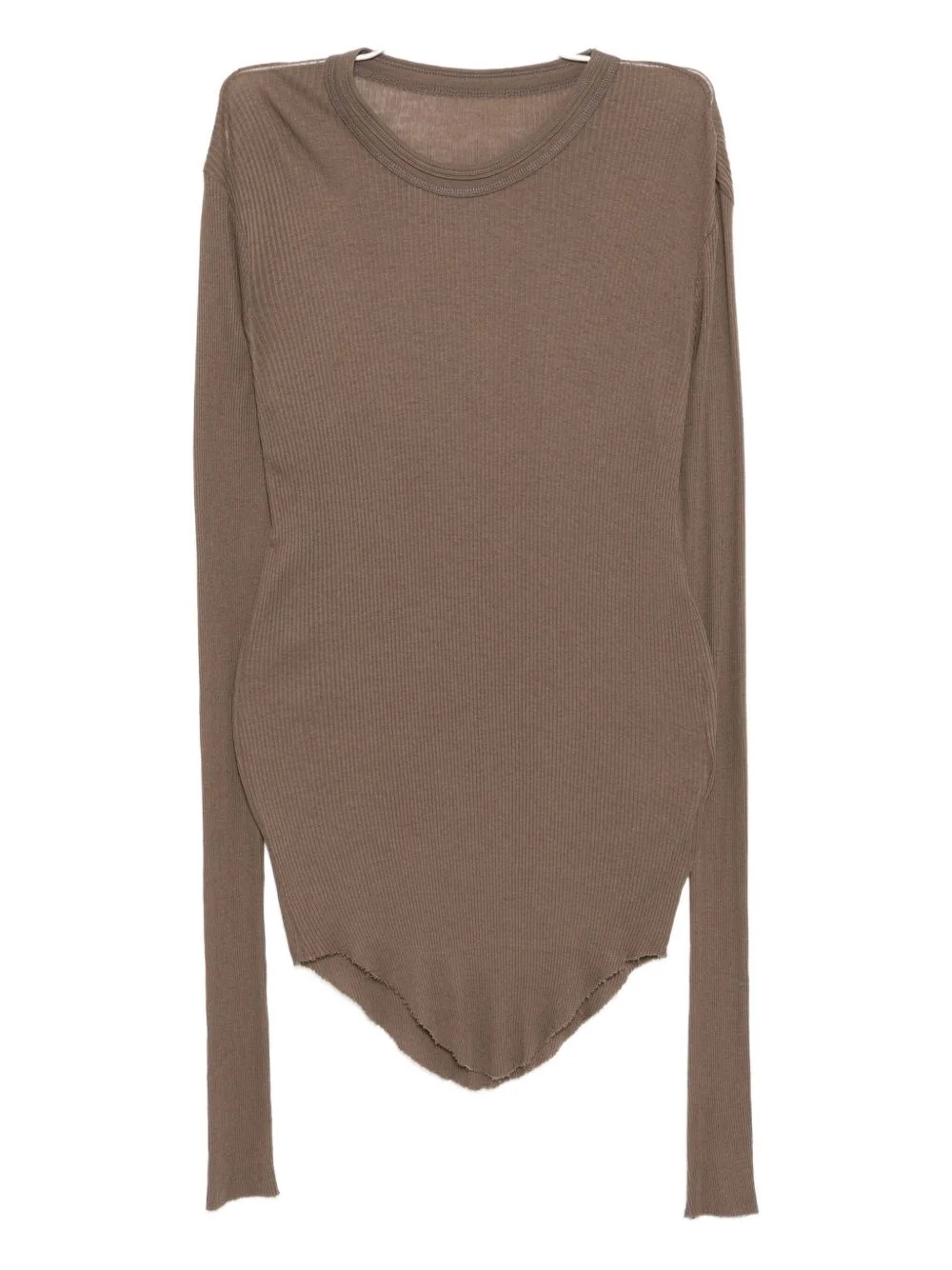 long-sleeved skinny top Highlights - Light brown - Crew neck - Asymmetric hem Imported Composition Cotton 80%, Silk 20% Washing instructions Hand Wash
