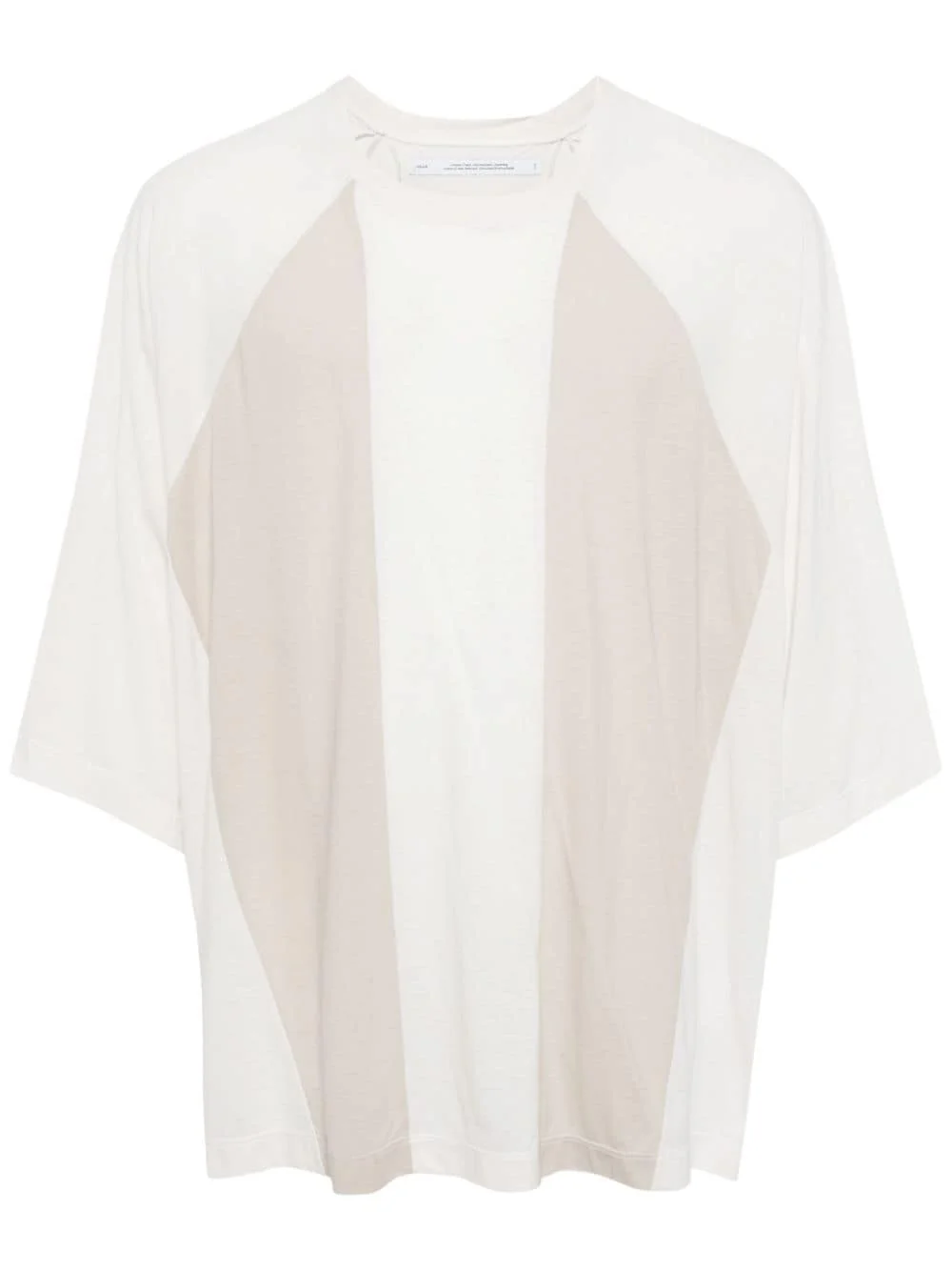 panelled cotton T-shirt Highlights - Ivory white - Cotton - Panelled design - Crew neck - Short raglan sleeves - Straight hem - Long length Imported Composition Cotton 100% SIZE & FIT Model measurements Height 6 ft 2 in(1.87 m) Bust/Chest 33.07 in(84 cm) Hips 35.43 in(90 cm) Waist 26.77 in(68 cm) FittingInformation Designed for an oversized fit, offering additional room throughout Made from a lightweight non-stretch fabric, this piece offers minimal elasticity when worn This piece fits true to size – take your usual size