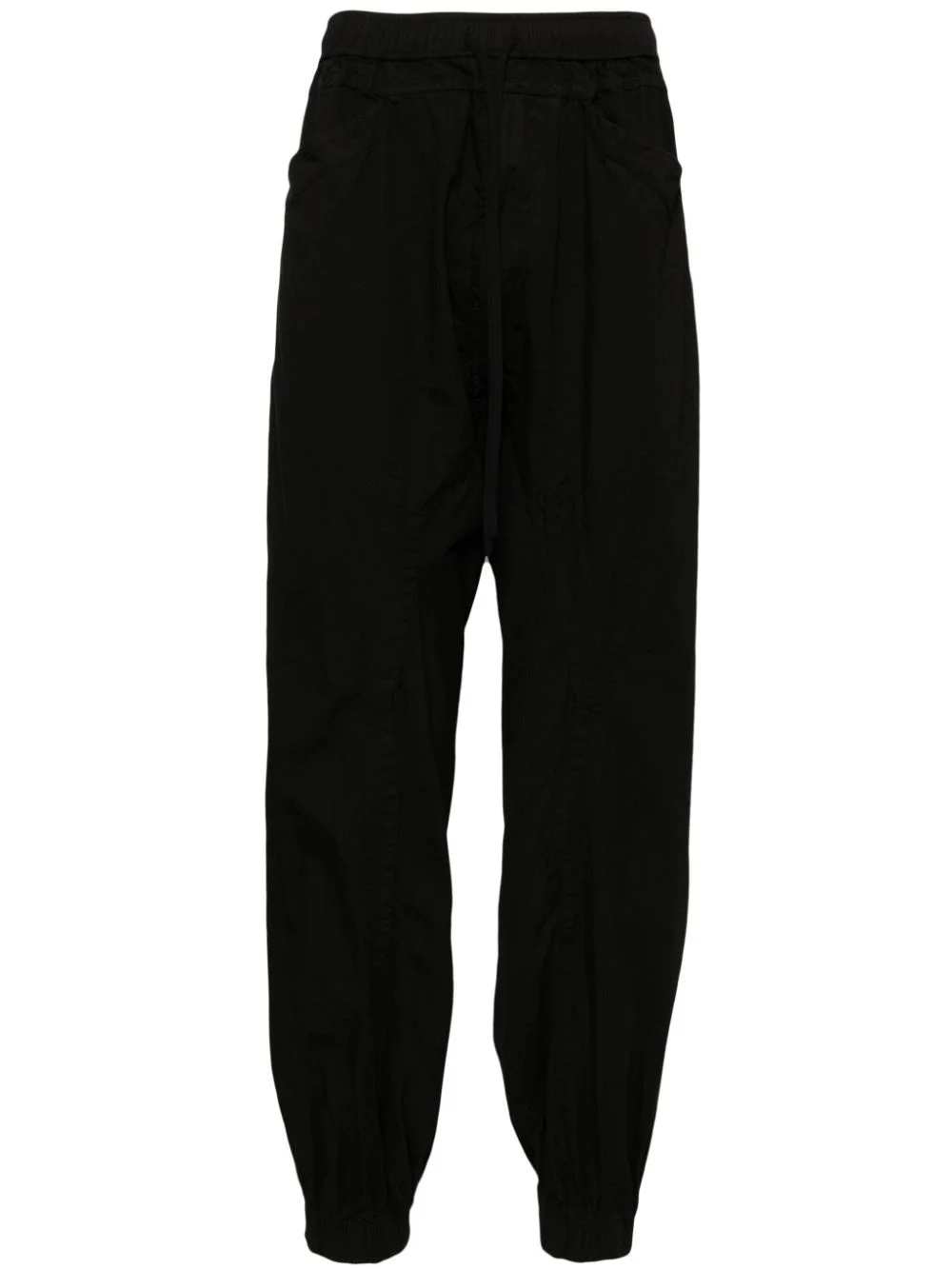 panelled trousers Highlights - Black - Cotton blend - Elasticated drawstring waistband - Panelled design - Two side inset pockets - Elasticated ankles Imported Composition Cotton 64%, Nylon 36% SIZE & FIT Model measurements Height 6 ft 2 in(1.87 m) Bust/Chest 33.07 in(84 cm) Hips 35.43 in(90 cm) Waist 26.77 in(68 cm) FittingInformation Designed for a tapered leg, offering a loose unrestricted fit over the leg with a closer fit towards the ankle The elasticated hem at the ankle allows for movement and a comfortable fit Made from a midweight non-stretch fabric