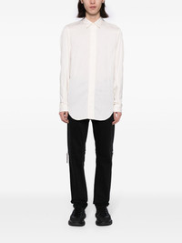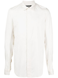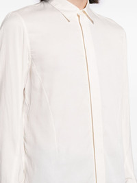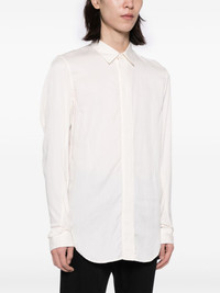 spread-collar concealed-fastening shirt Highlights - Off-white - Spread collar - Concealed front fastening - Long sleeves - Buttoned-cuff sleeves - Curved hem Imported Composition Rayon 65%, Cotton 35% SIZE & FIT Model measurements Height 6 ft 2 in(1.87 m) Bust/Chest 33.07 in(84 cm) Hips 35.43 in(90 cm) Waist 26.77 in(68 cm) FittingInformation Designed to be unstructured, offering a loose fit throughout Made from a midweight non-stretch fabric This piece fits true to size – take your usual size Washing instructions Hand Wash