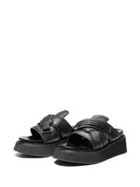 Tape leather sandals Highlights - Black - Calf leather - Panelled design - Double-strap design - Almond open toe - Touch-strap fastening - Branded leather insole - Chunky rubber sole - Slip-on style Imported Composition Outer: Goat Skin 100%, Polyester 60%, Cotton 40% Lining: Calf Leather 100% Sole: Rubber 100%