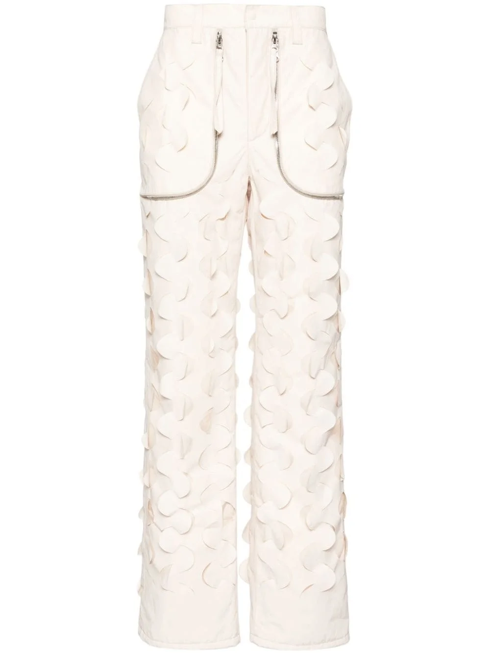 laser-slashed padded trousers Highlights - Cream white - Padded design - Laser-cut detail - Front press-stud and zip fastening - Belt loops - Decorative zip detailing - Two side slash pockets - Two rear flap pockets Imported Composition Outer: Polyester 70%, Cotton 30% Lining: Polyester 100%