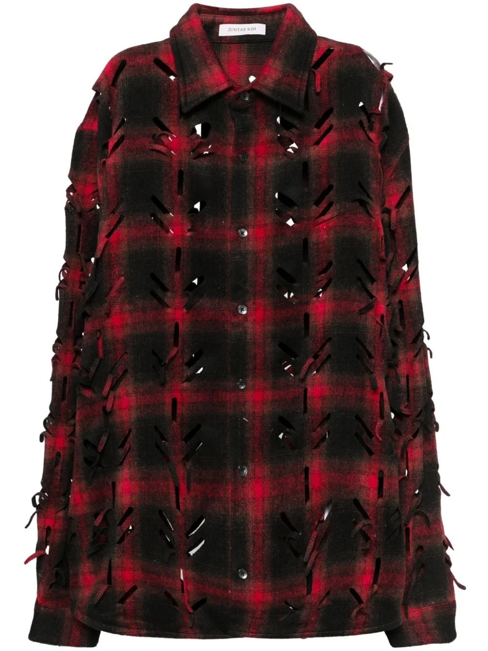 laser-slashed shirt Highlights - Red/black - Flannel - Laser-cut detail - Front button fastening - Classic collar - Plaid check pattern - Raised seam detail - Long sleeves - Buttoned cuffs - Curved hem Imported Composition Body: Polyester 100% SIZE & FIT Model measurements Height 6 ft 3 in(1.9 m) Bust/Chest 35.03 in(89 cm) Hips 36.61 in(93 cm) Waist 29.13 in(74 cm) FittingInformation Designed for a relaxed fit, this piece allows for comfort and movement when worn Made from a midweight non-stretch fabric