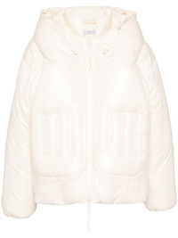 spiral puffer jacket Highlights - Cream white - Padded design - Goose down - Front zip fastening - Drawstring hood - Two side zip-fastening pockets - Elasticated cuffs - Drawstring hem Imported Composition Filling: Goose Feather 100% Lining: Polyester 100% Outer: Polyester 100%
