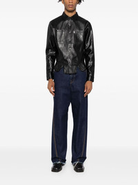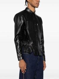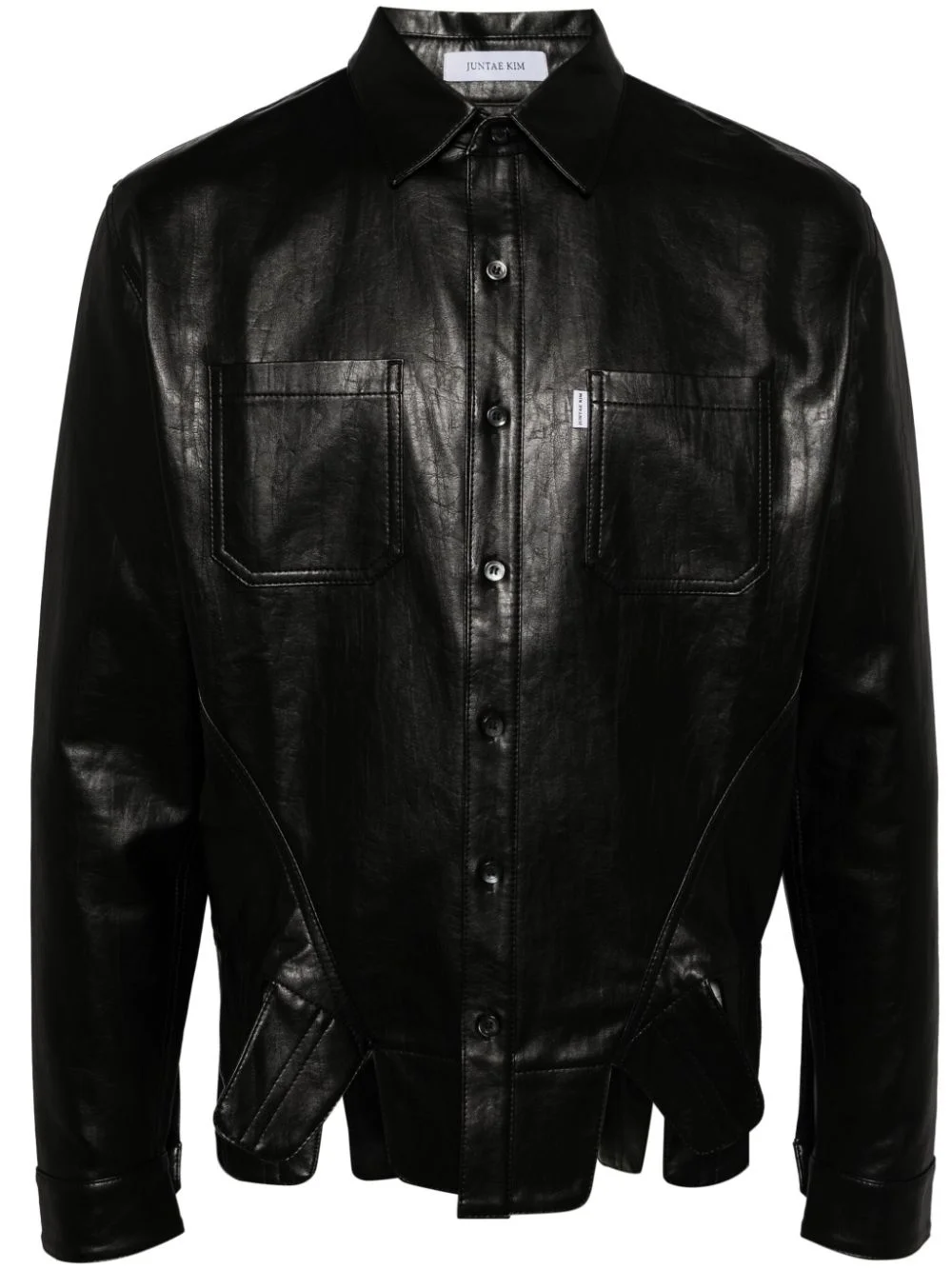 square petal corset shirt Highlights - Black - Faux leather - Panel detailing - Raised seam detail - Front button fastening - Classic collar - Two chest patch pockets - Mini logo tag - Long sleeves - Buttoned cuffs - Asymmetric hem Imported Composition Polyurethane 100% SIZE & FIT Model measurements Height 6 ft 3 in(1.9 m) Bust/Chest 35.03 in(89 cm) Hips 36.61 in(93 cm) Waist 29.13 in(74 cm) FittingInformation Designed for a slim fit, offering a comfortable fit that sits just away from the body Made from a midweight non-stretch fabric