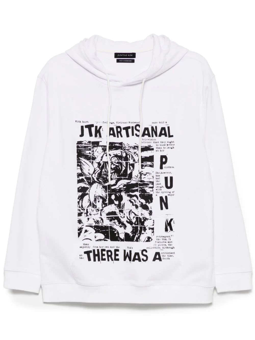 "There Was A Punk" hoodie Highlights - White - Drawstring hood - Front pouch pocket - Ribbed cuffs and hem Imported Composition Cotton 100% SIZE & FIT Model measurements Height 6 ft 2 in(1.87 m) Bust/Chest 33.07 in(84 cm) Hips 35.43 in(90 cm) Waist 26.77 in(68 cm) FittingInformation Designed to be unstructured, offering a loose fit throughout The ribbed hem offers a close, comfortable fit Made from a midweight non-stretch fabric, this piece offers minimal elasticity when worn