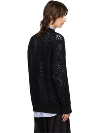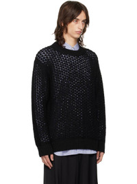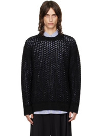 Open knit wool sweater. Rib knit crewneck, hem, side seams, armscyes, and cuffs. Part of the Junya Watanabe MAN collection. Supplier color: Black
