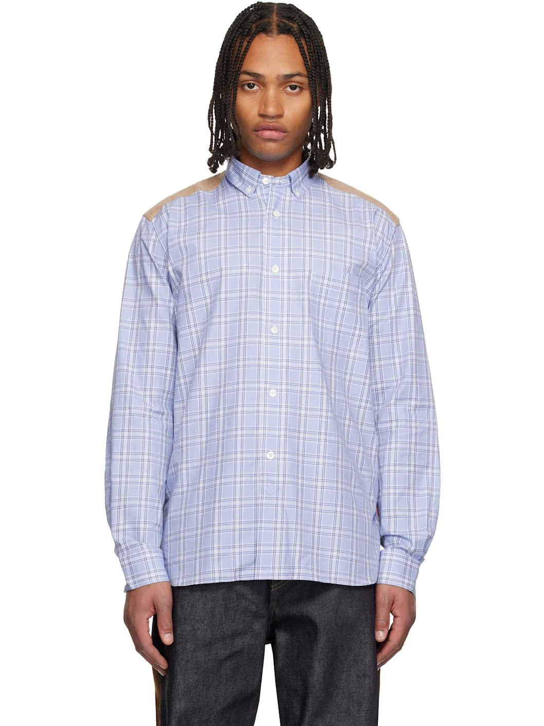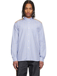 Cotton poplin and quilted nylon taffeta shirt. · Paneled construction · Check pattern throughout · Spread collar · Button closure · Patch pocket at chest · Shirttail hem · Cotton twill panel at shoulders and sleeves · Buttoned barrel cuffs Part of the Junya Watanabe MAN collection. Supplier color: Navy/White/Orange Body 1: 100% cotton. Body 2: 100% polyamide. Fill: 100% polyester. Made in Japan 252253M192002
