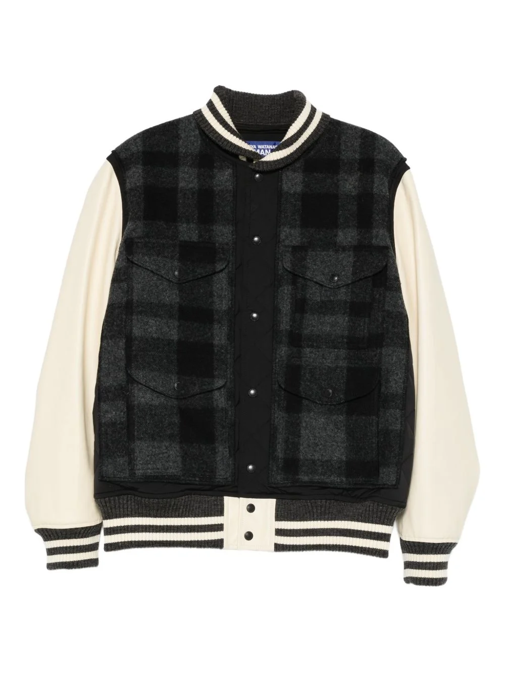 check panelled jacket Highlights - Dark grey - Check pattern - Panelled design - Ribbed trims - Press-stud fastening - Chest flap pockets Imported Composition Outer: Polyester 100%, Wool 100%, Calf Leather 100% Lining: Cupro 100%, Polyester 100% SIZE & FIT Model measurements Height 6 ft 1 in(1.85 m) Bust/Chest 38.58 in(98 cm) Hips 37 in(94 cm) Waist 30.31 in(77 cm) Washing instructions Dry Clean Only