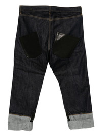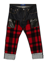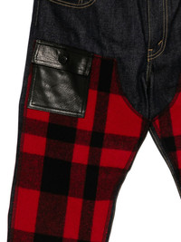 checked drop-crotch jeans Highlights - Indigo blue - Front button and zip fastening - Classic five pockets - Two front flap pockets - Belt loops Imported Composition Wool 100%, Leather 100% Outer: Cotton 100% Washing instructions Dry Clean Only