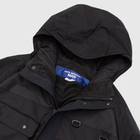 - WL-J013-051-1 - Black - 69%Cotton,Nylon 29%, 2% Polyurethane - Paneled construction - Pullover hood with adjustable drawstring - Concealed two-way zip with snap button closure - Multiple front pockets - Integrated backpack - Adjustable nylon cinch strap - Adjustable velcro cuffs - Adjustable drawstring hem - Printed Branding - FW23 - Made in Japan