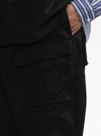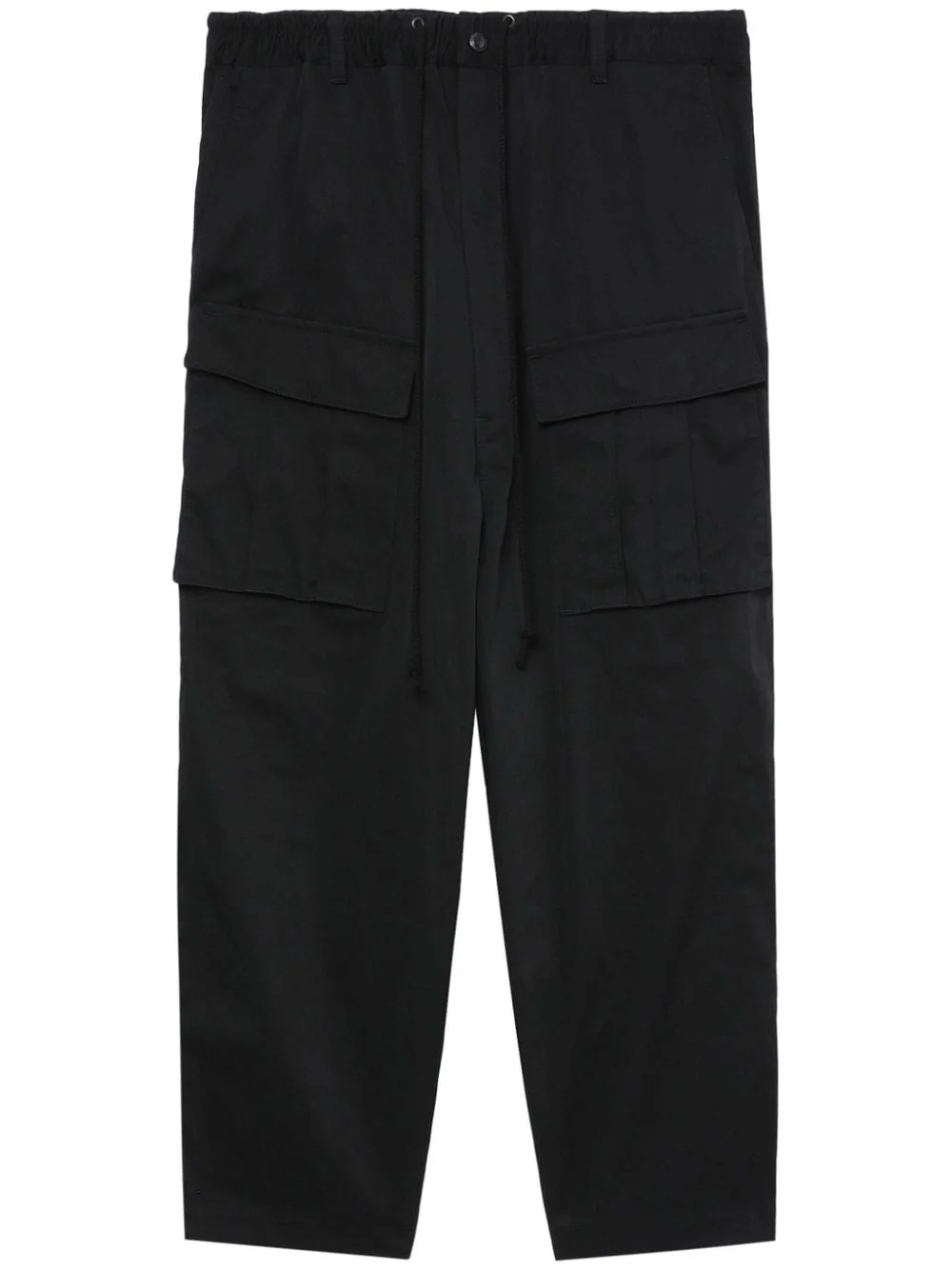 drop-crotch cropped cargo trousers Highlights - Black - Cropped - Straight leg - Drop crotch - Elasticated drawstring waistband - Two front cargo pockets - Two rear flap pockets Imported Composition Nylon 100% Washing instructions Read Manufacturer Guidelines