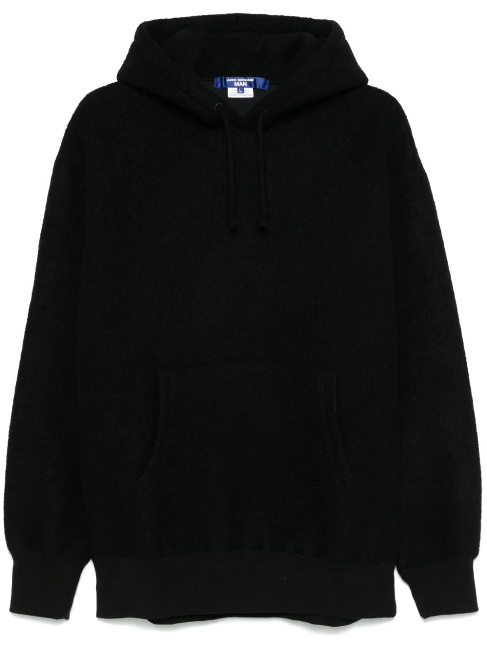 felted hoodie Highlights - Black - Felted finish - Drawstring hood - Drop shoulder - Long sleeves - Elbow patches - Unlined - Ribbed cuffs and hem - Straight hem Imported Composition Outer: Polyurethane 100%, Wool 70%, Polyester 18%, Nylon 12% Lining: Polyester 100% SIZE & FIT Model measurements Height 6 ft 2 in(1.88 m) Bust/Chest 36.61 in(93 cm) Hips 35.82 in(91 cm) Waist 27.95 in(71 cm) FittingInformation Designed to be unstructured, offering a loose fit throughout The ribbed hem offers a close, comfortable fit Made from a midweight non-stretch fabric, this piece offers minimal elasticity when worn Washing instructions Dry Clean Only