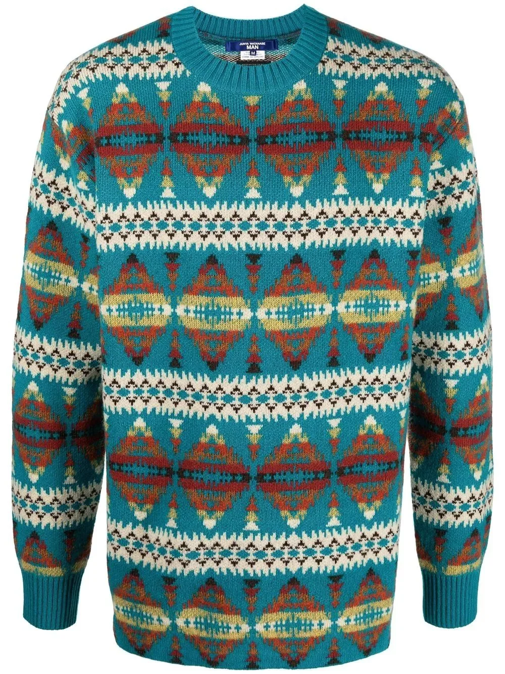 intarsia-knit wool jumper Highlights - Turquoise blue-green/multicolour - Wool blend - Patterned intarsia knit - Ribbed trim - Crew neck - Long sleeves - Straight hem Imported Composition Wool 93%, Nylon 7% SIZE & FIT Model measurements Height 6 ft 2 in(1.87 m) Bust/Chest 36.41 in(92.5 cm) Hips 37 in(94 cm) Waist 29.52 in(75 cm) FittingInformation This piece fits true to size. We recommend you get your regular size Cut for a loose fit Made with a mid-weight fabric Washing instructions Dry Clean Only