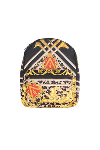 The Junya Watanabe Man Silk Scarf Backpack with lightweight construction featuring a large zip front pocket, an internal pocket, and elongated adjustable strabs in webbed nylon. Lined. Dimensions: H 18" W 14" DETAILS - Unisex - Lightweight - Top handle - Elongated adjustable straps - Large exterior pocket - Small interior pocket - Lined Product codes: - SKU: ESSX/JUN/SS25/WOK2060511/Multi/OS - UPC: 3607936303877