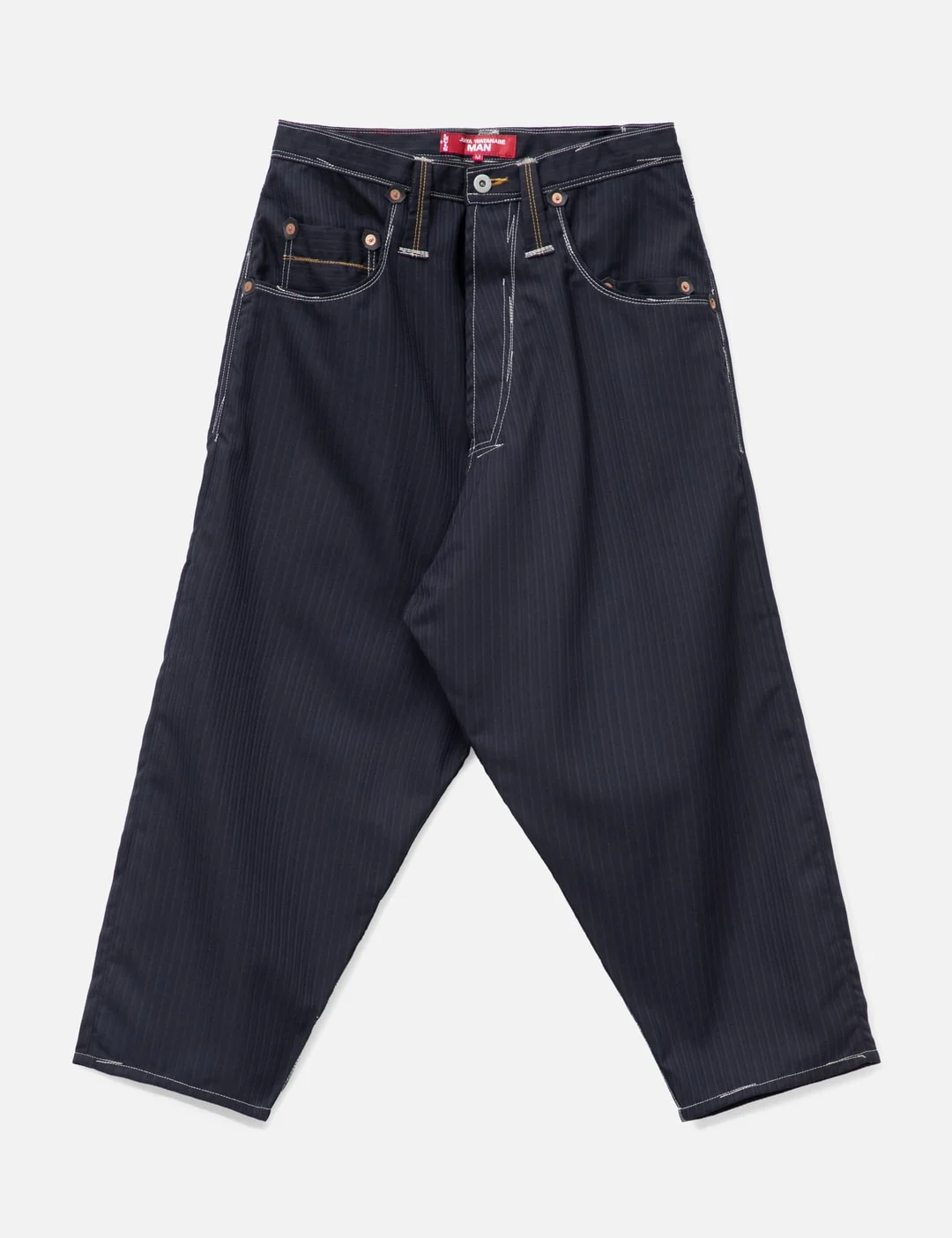 - Junya Watanabe Man - Junya Watanabe MAN x Levi's Wool Pinstriped Cropped Pants - Junya Watanabe MAN x Levi's collaboration - Made of wool knitted fabric - Pinstripe pattern - Loose fit - Adjustable waist strap - Button fly - 5-pocket - Dropped crotch - Made in Japan - Color: Navy/ Gray - Material: 100% Wool; Lining: Cupro; Leather - See more Pants and Clothing - Model wears size M - Model measures: Height 189cm, Chest 35.5”/90cm, Waist 28.5”/72.5cm, Hip 37.5”/95cm - Vendor Code: WQ-P209-051