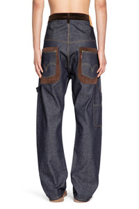 DESCRIPTION - Collaboration with Levi's - Indigo/brown - Denim - Contrast stitching - Velvet waist - Front button and zip closure - 2 wide side pockets - Back suede trims pockets - Straight leg DETAILS - Made in: Japan - Composition: 100% Cotton - Model code: WPP203W25 1 - Item ID: 9780303102294 SIZE & FIT Model wears size M Model Height 188 cm Chest 88 cm Waist 69 cm Hips 88 cm