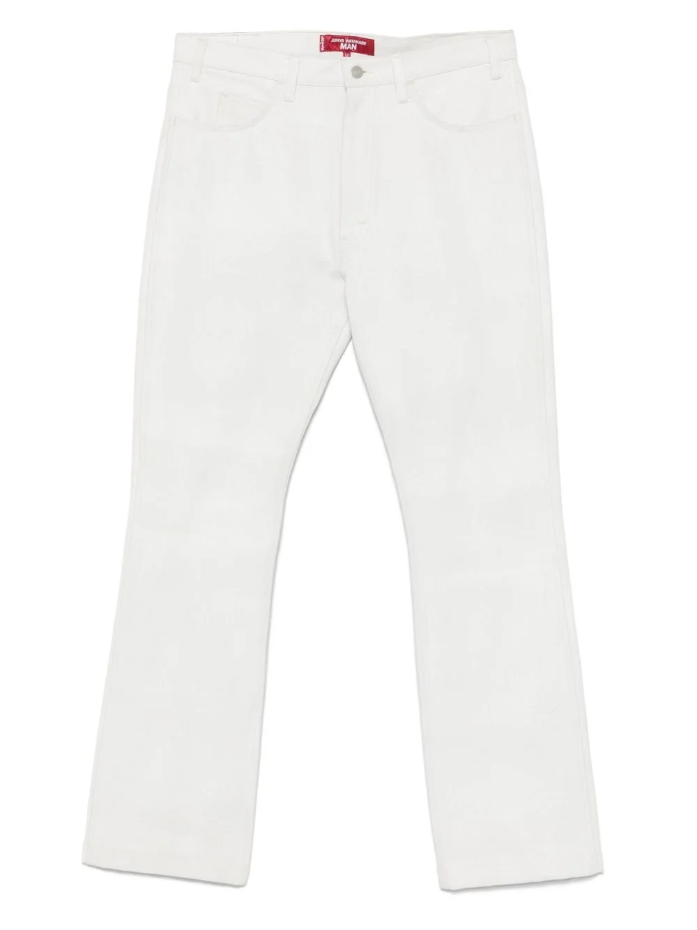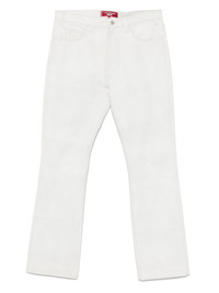 logo-patch jeans Highlights - White - Concealed fly and button fastening - Belt loops - Classic five pockets - Mini logo tag Imported Composition Cotton 100% SIZE & FIT Model measurements Height 6 ft 2 in(1.88 m) Bust/Chest 37.4 in(95 cm) Hips 38.58 in(98 cm) Waist 31.1 in(79 cm) FittingInformation Designed with a flared hem, offering a slim fit over the leg, widening towards the hem Sturdy and hard-wearing, this denim piece offers no stretch