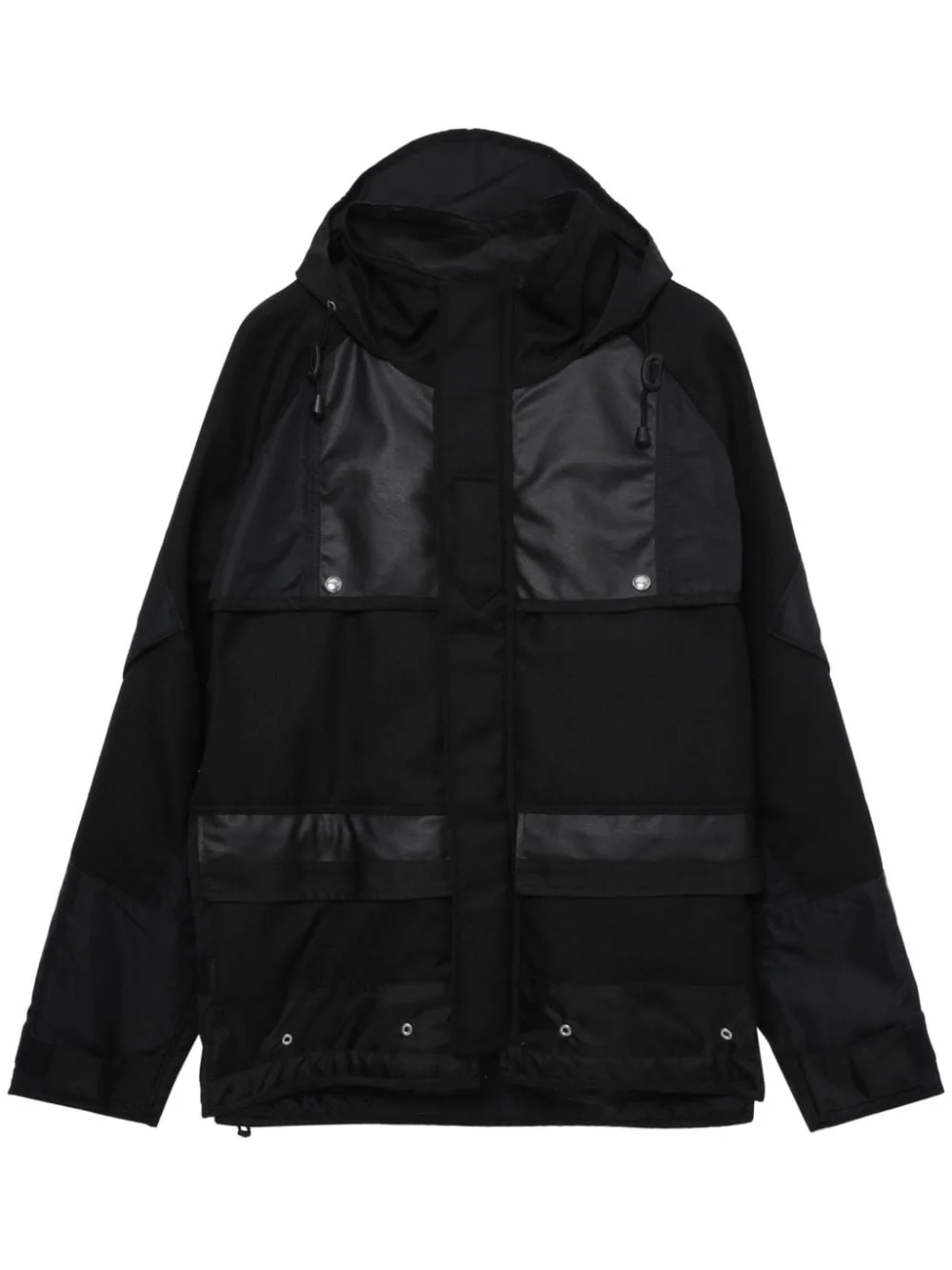logo-print hooded jacket Highlights - Black - Wool - Tonal design - Logo print to the rear - Classic hood - Funnel neck - Front zip fastening - Long sleeves - Two side zip-fastening pockets - Two front flap pockets - Straight hem Imported Composition Wool 100%